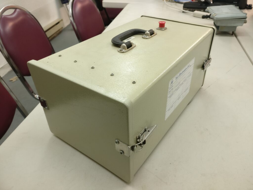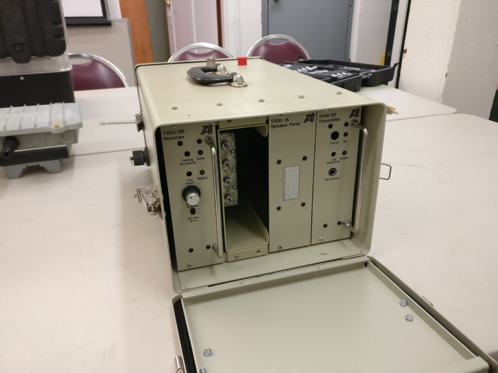 This is the clubs Tait T800 series portable suitcase repeater. This repeater can be deployed in the field in the event localized coverage is needed for an incident or event. We are also able to lend it out to fellow groups in the province.